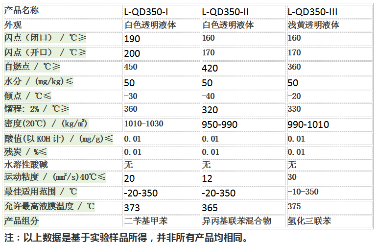 L-QD350高溫導(dǎo)熱油系列是液相有機(jī)熱載體中使用溫度較高、運(yùn)用廣泛的導(dǎo)熱油,原料是在溫度750℃的條件下反應(yīng)生成,這決定了L-QD350導(dǎo)熱油好的熱穩(wěn)定性,在-10度-350度范圍內(nèi)使用,具有佳的高溫穩(wěn)定性,是目前全球使用廣泛的超高溫液相合成導(dǎo)熱油。